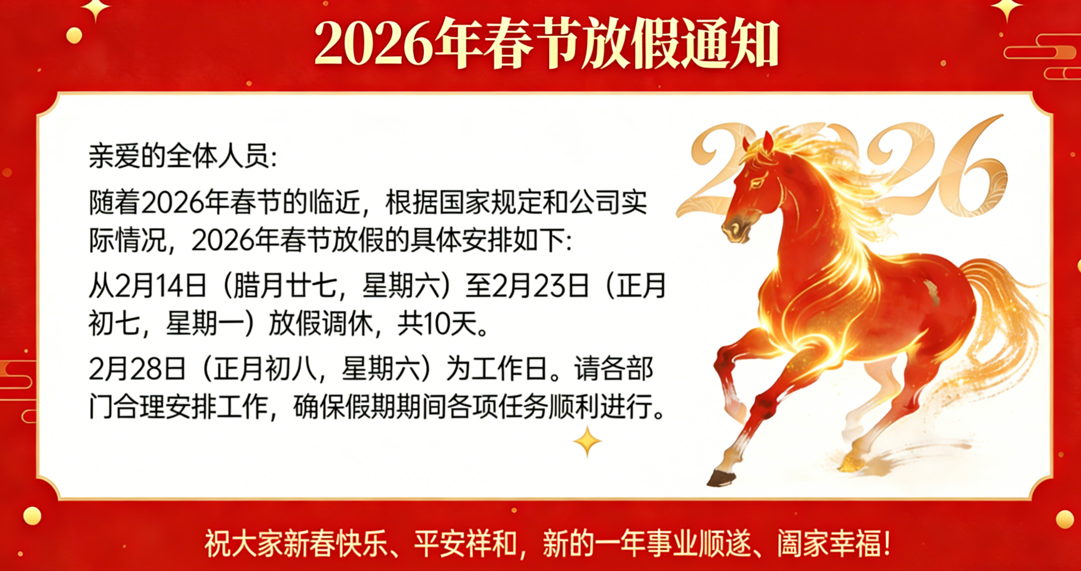 2026 年马年春节放假安排通知